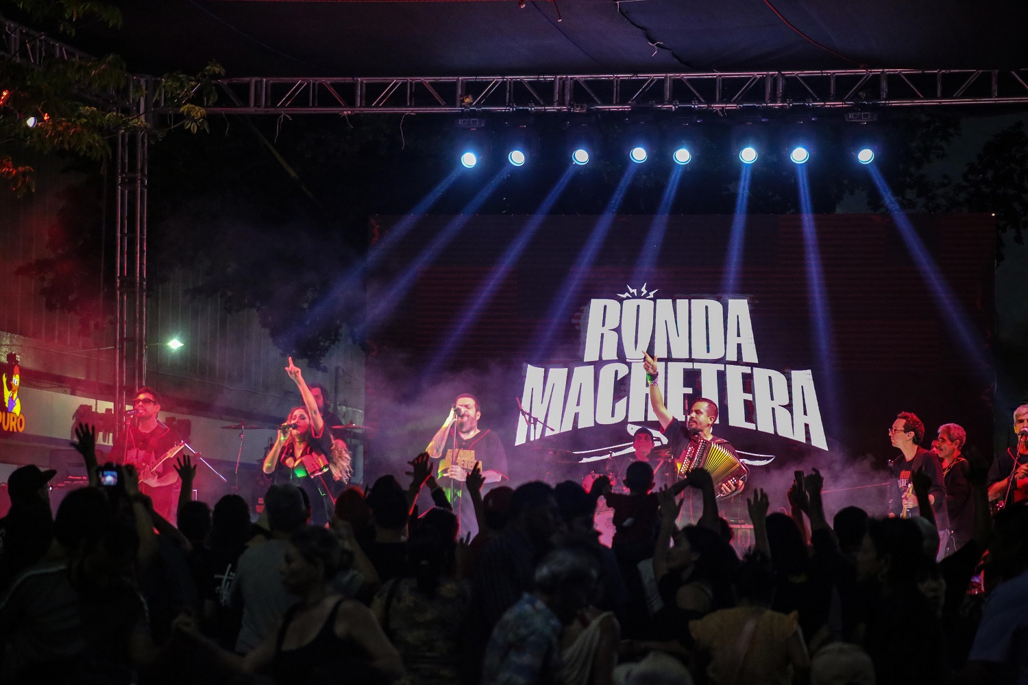 Las cumbias La Reina, La arenosa, Macondo y la Cumbia de la paz, formaron parte del programa de la noche de Ronda Machetera, en las que el sonido del acordeón y las percusiones tuvieron un papel protagónico con el característico toque colombiano de la banda.