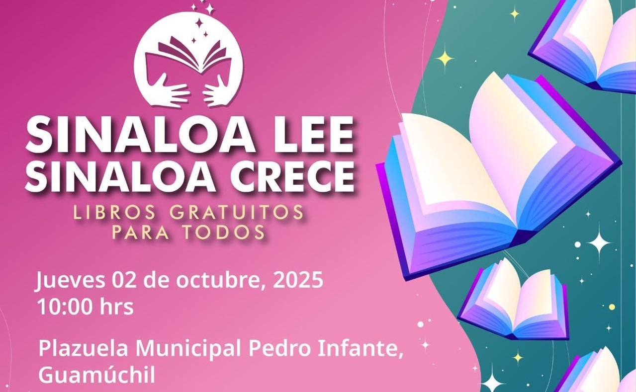 Culiacán.- El Instituto Sinaloense de Cultura continúa este jueves 2 de octubre con su exitosa estrategia de fomento a la lectura Sinaloa lee, Sinaloa crece: Libros gratuitos para Todos, ahora en la plazuela Municipal Pedro Infante de Guamúchil, desde las 10:00 horas.