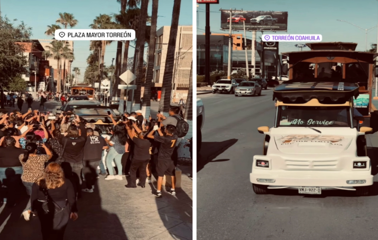 Torreón.-Ahora fueron las avenidas principales de la ciudad de Torreón, Coahuila, las que fueron testigos de una singular caravana, en la que, nuevamente, la tradicional ‘pulmonía” circuló llevando como pasajeros a algunos de los integrantes de la Banda MS