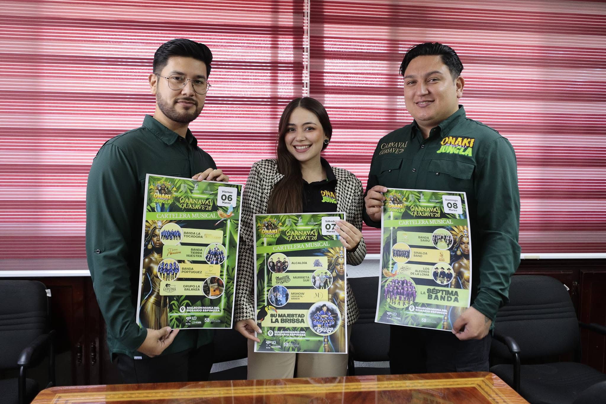 El Comité Organizador del Carnaval Guasave 2026 Onaki un Viaje a la Jungla dio a conocer la cartelera artística para este próximo 6, 7 y 8 de marzo, con eventos totalmente gratuitos; cambiaron la sede del estadio Kuroda Park, al Malecón María del Rosario Espinoza.