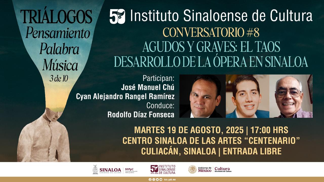 Ello, dentro del ciclo Triálogos, pensamiento, palabra, música, en su edición No. 8, organizado por la Dirección de Patrimonio Cultural del Instituto Sinaloense de Cultura.