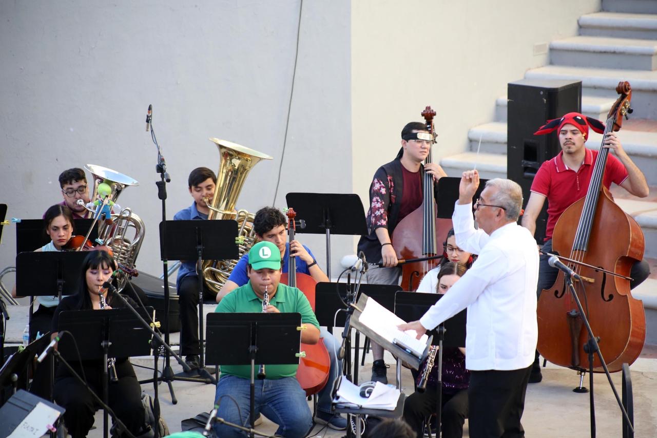 Culiacán.- La Banda Sinfónica Juvenil del Estado, adscrita al Instituto Sinaloense de Cultura, celebró a las niñas y niños de Sinaloa con el programa “El Niño y la Música”, en el Ágora Rosario Castellanos del Centro Cultural Genaro Estrada, donde interpretó jubilosa música de cine y de videojuegos.