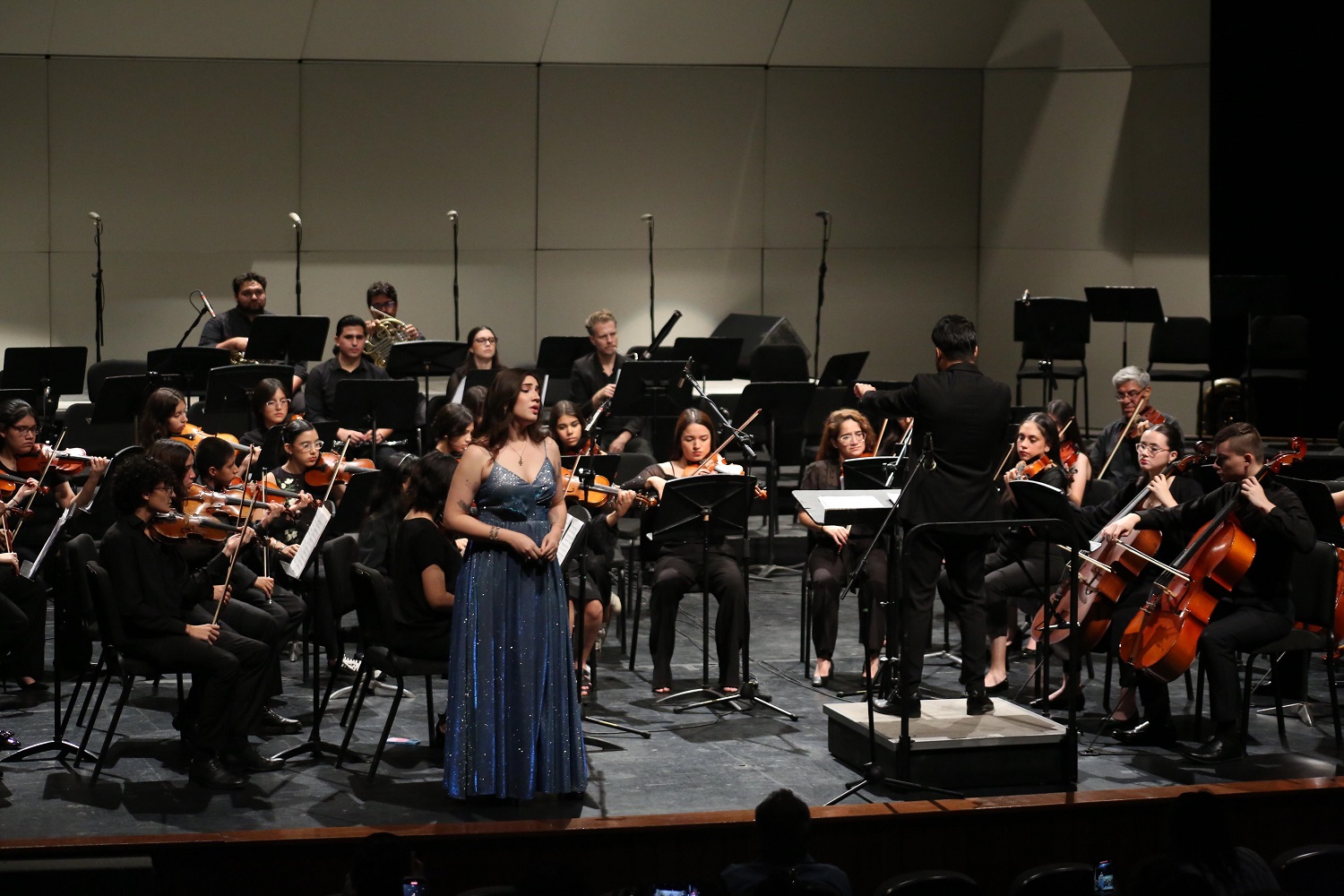 Luego, el aria Stride la Vampa,  de la ópera El trovador, de Giuseppi Verdi, que tuvo como solista a la mezzosoprano Belén Elizama Valenzuela Soto, que cerró entre sonoros aplausos.