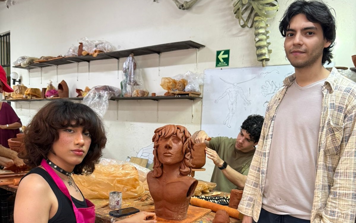 Durante una de las sesiones recientes, por ejemplo, un estudiante modelaba una escultura inspirada en un arcángel, trabajando primero el torso para después integrar las alas que completarán la pieza.