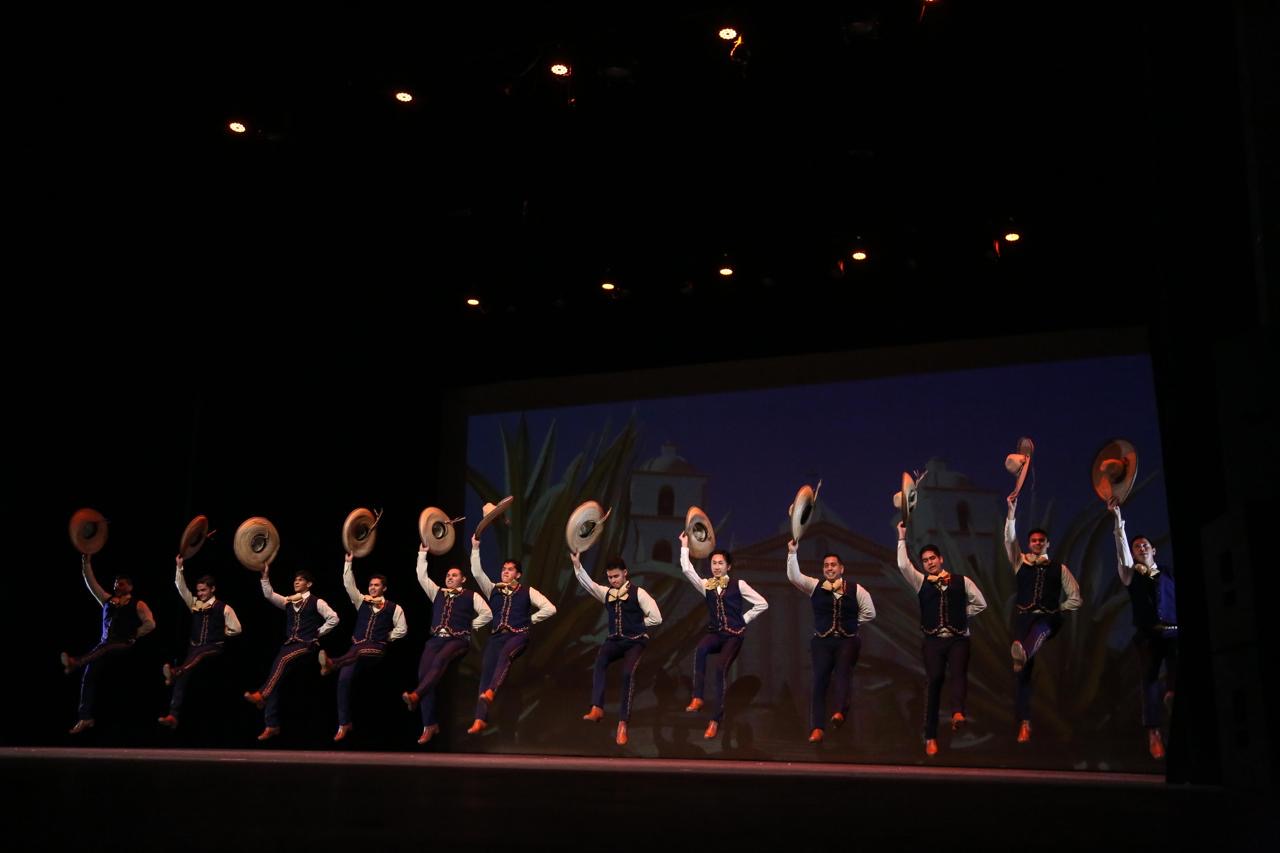 Continuó con “Fiesta en Jalisco”, con sones como “El huizache”, “El Carretero”, “Las alazanas”. “El autlense”, “El gavilán” “La negra”, con la riqueza danzaría esa tierra, cuna del mariachi y del tequila, para cerrar esta sección con la imagen del charro y de la china poblana bailando el famoso “Jarabe tapatío”, y rematar con la alegría de “Viva México”.