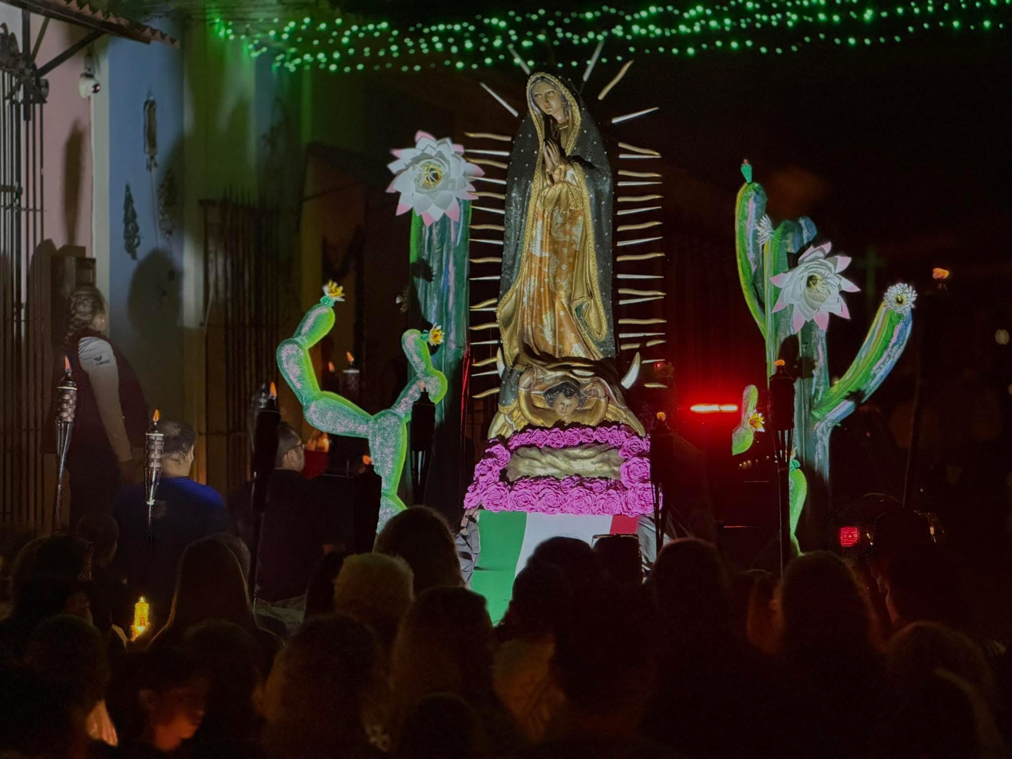 Como ya es una tradición, familias enteras se dieron cita en este festival para recorrer las calles alumbrados con velas evocando canto en honor a la Virgen de Guadalupe.