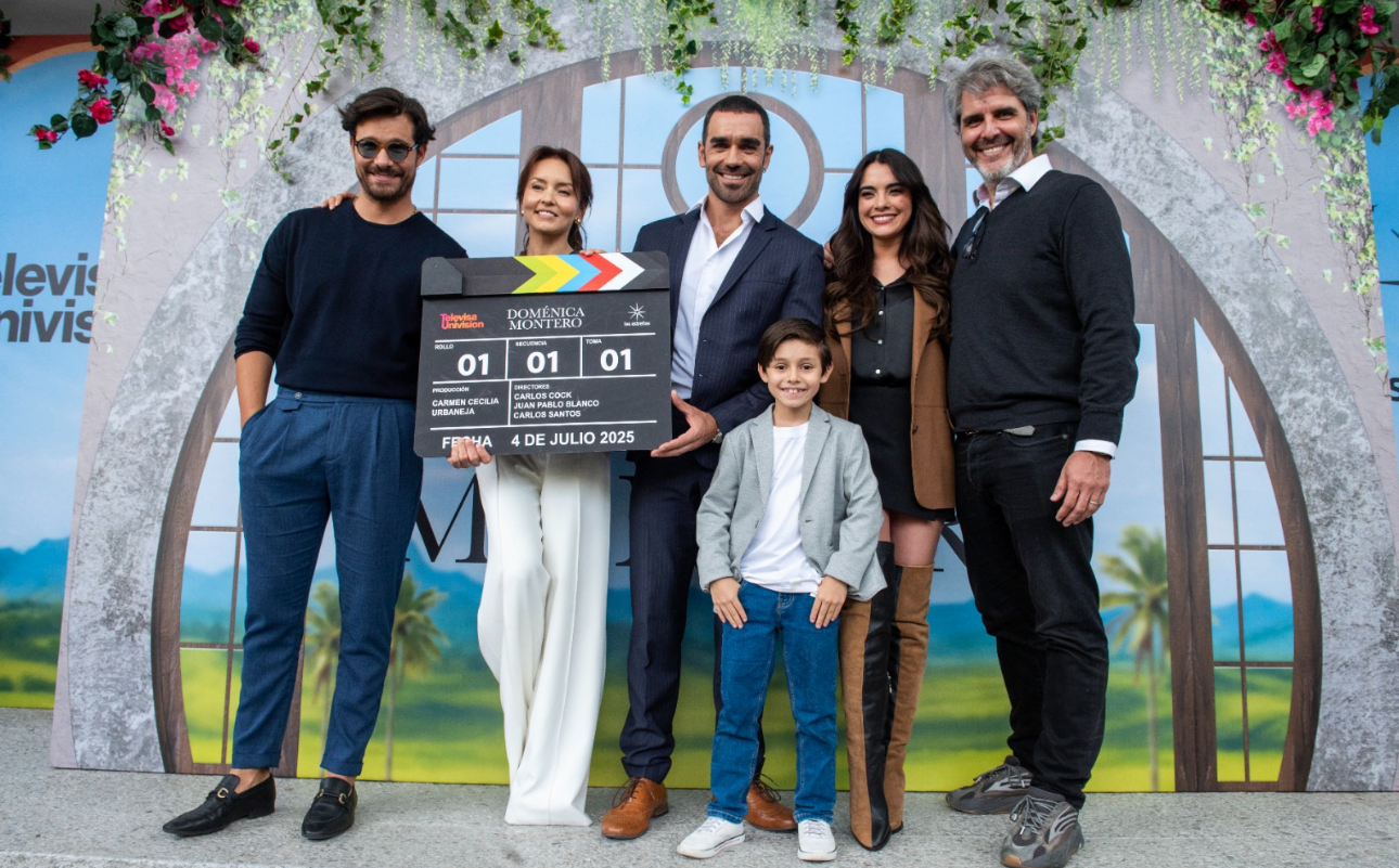 Ciudad de México.- “Doménica Montero”, estelarizada por Angelique Boyer, Marcus Ornellas, Scarlet Gruber y Brandon Peniche, realizó hoy su pizarrazo de inicio de grabaciones en la Plaza de las Estrellas de Televisa San Ángel.