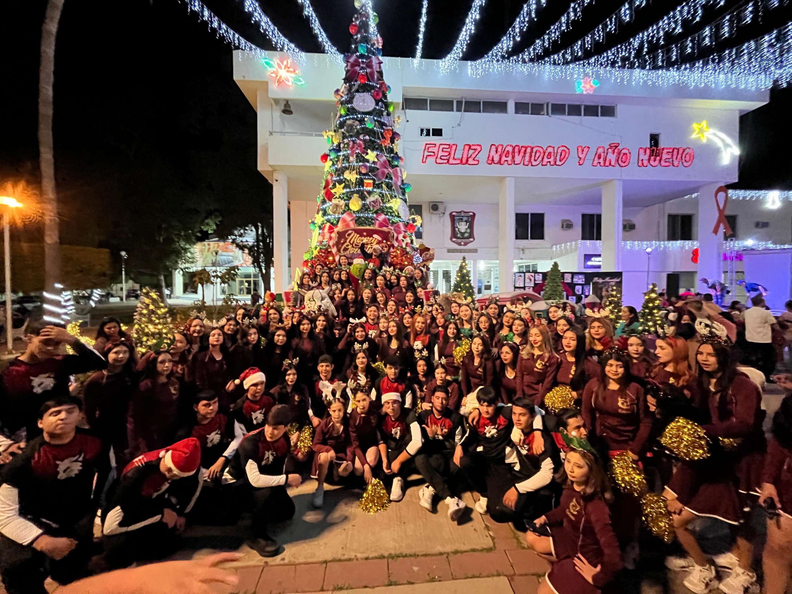 Guamúchil.– Con un ambiente lleno de magia, música y espíritu festivo, la Presidenta Municipal, Lupita López González, encabezó el tradicional encendido del Árbol de Navidad en la explanada de la Presidencia Municipal, marcando el inicio oficial del mes de la alegría, las posadas y la convivencia familiar que trae consigo diciembre, cierre del año 2025.