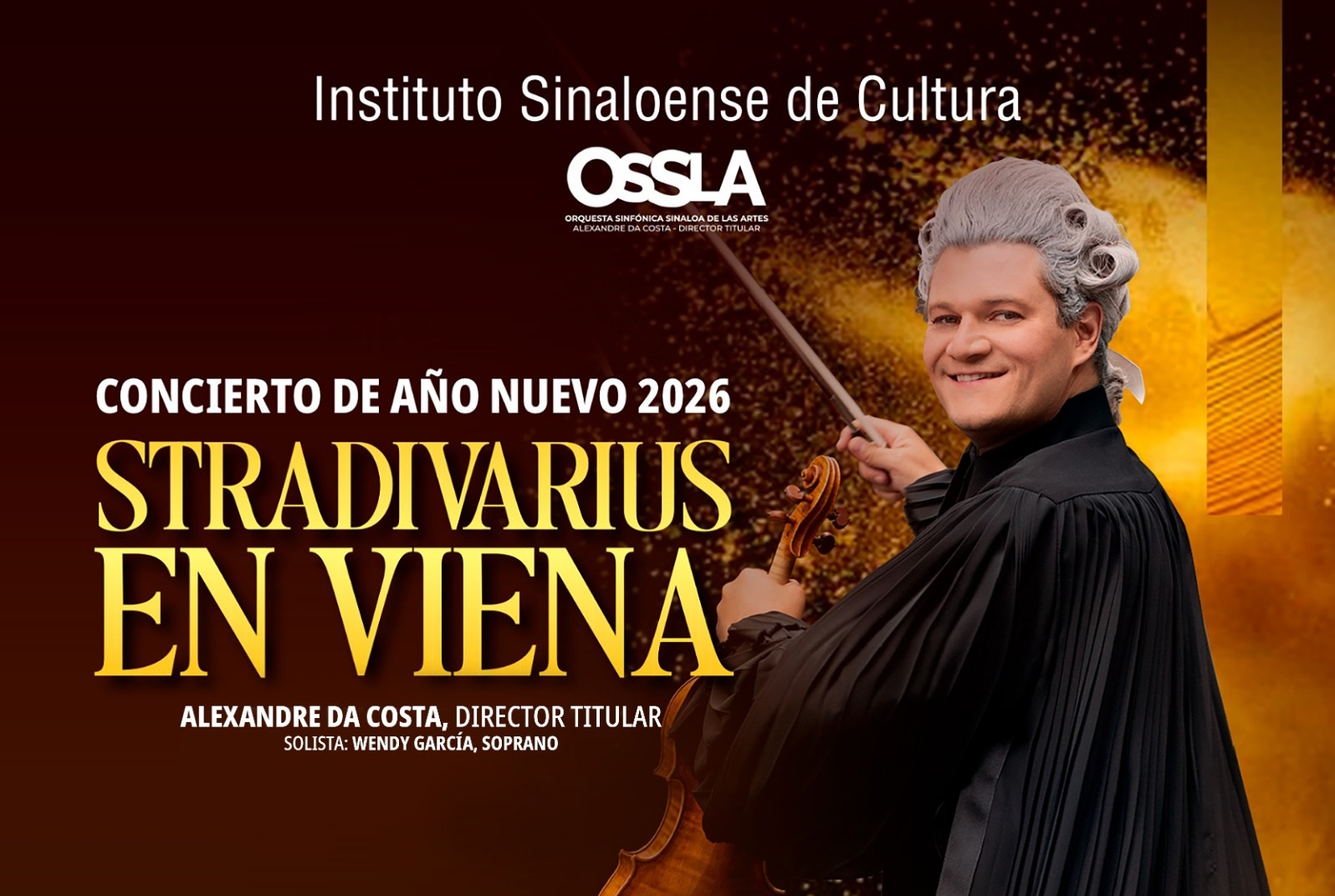 Culiacán.- Este jueves 15 de enero a las 18:00 horas y domingo 18 a las 12:30 horas, en el Teatro Pablo de Villavicencio del Instituto Sinaloense de Cultura se llevará a cabo el Concierto de Año Nuevo 2026, “Stradivarius en Viena”, protagonizado por la Orquesta Sinfónica Sinaloa de las Artes con su director titular, el maestro Alexandre Da Costa.
