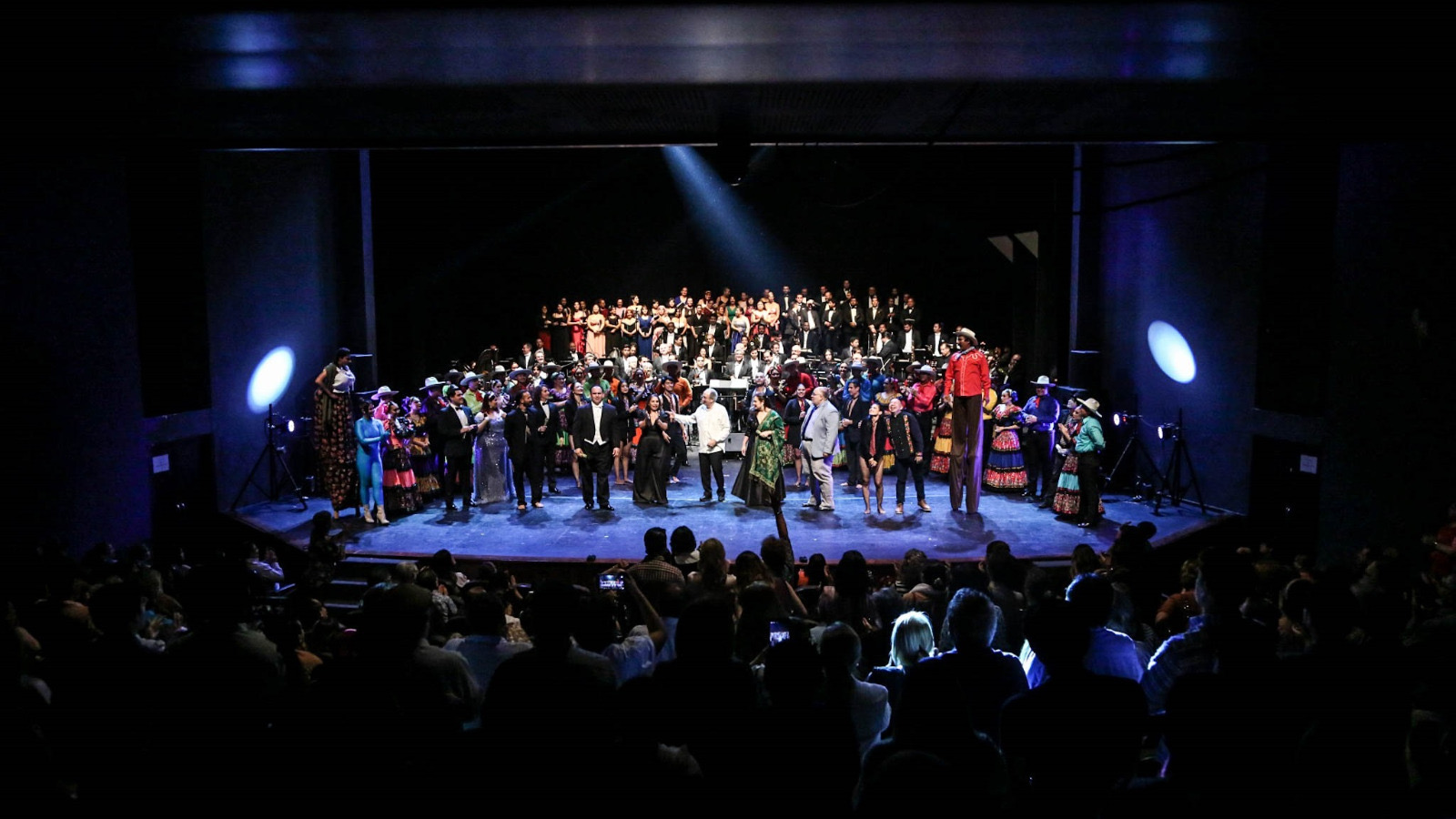 En un homenaje a grandes cantantes nacionales, la mezzosoprano guamuchilense Oralia Castro ofreció una bella interpretación de “Paloma negra” y “Cucurrucucú Paloma”, evocando a Lola La Grande, y siguió con “Échame a mí la culpa”, de José Ángel Espinoza Ferrusquilla, en las voces de Evelin Tobón, Cecilia Antelo, Elisa Haro, Cyan Rangel, del Taller de Opera; para volver Chu Reyes y cantar el bolero “Cien años”, de Rubén Fuentes y “La ley del monte”, también de Ferrusquilla y el Taller de Ópera, y el Ensamble Tradicional del Pacífico.