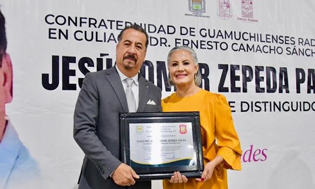 Guamúchil.- En un evento solemne y lleno de orgullo guamuchilense, Jesús Omar Zepeda Payán recibió el reconocimiento como Guamuchilense Distinguido 2025, una condecoración que año con año otorga la Confraternidad de Guamuchilenses Radicados en Culiacán “Ernesto Camacho Sánchez” a ciudadanos que han destacado por su aportación positiva al municipio.