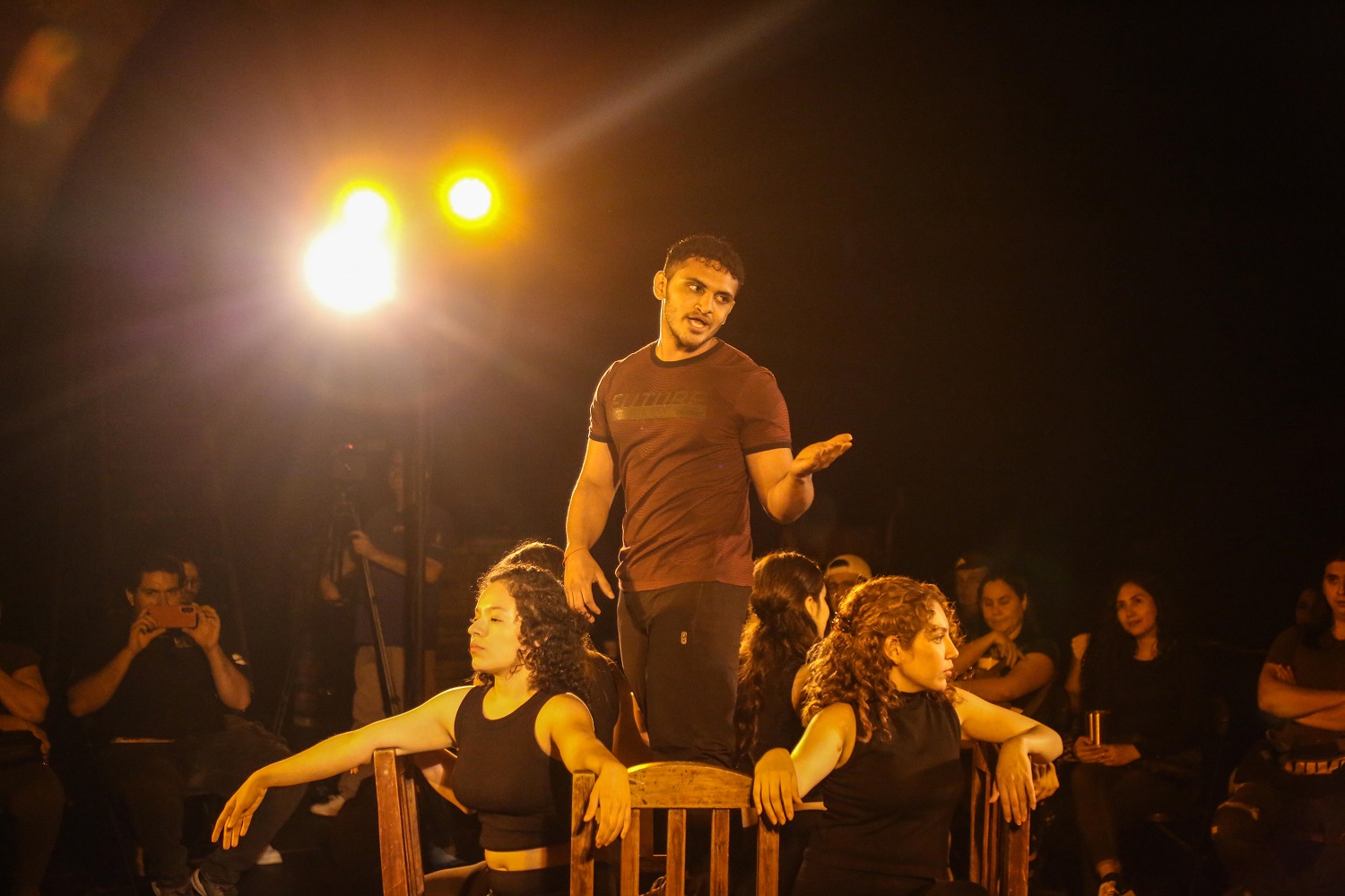 La pieza fue presentada en el Teatro Pablo de Villavicencio, con el público sobre el escenario, por lo que hubo personas que no alcanzaron cupo en las hiladas de sillas dispuestas alrededor del centro de la escena, y algunos la vieron desde las butacas abajo y otros arriba, pero de pie.