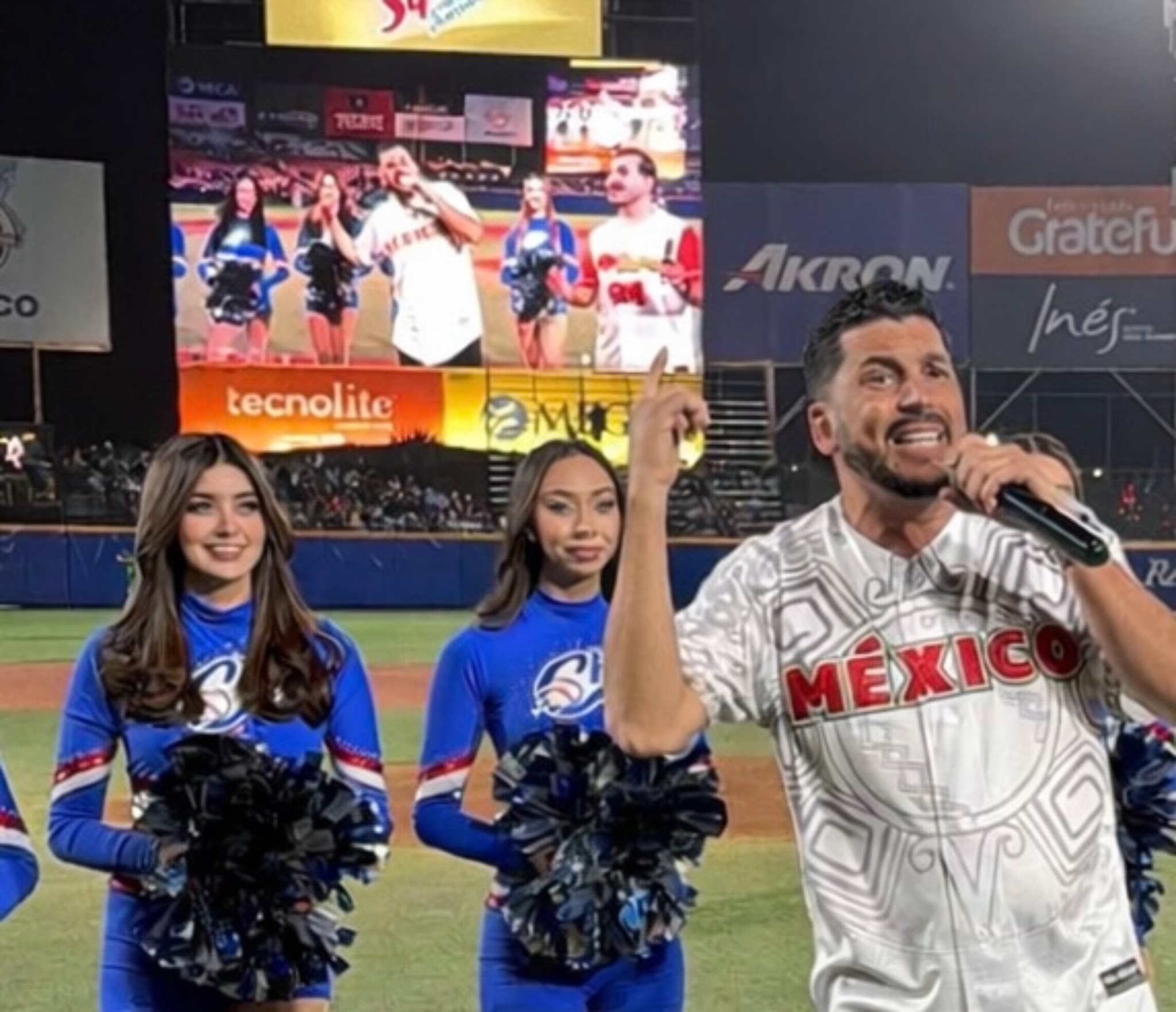 Previo al arranque del encuentro, el reconocido cantante de música regional mexicana fue el encargado de entonar el clásico “Play Ball”, desatando la ovación de los miles de asistentes que se dieron cita en el recinto.