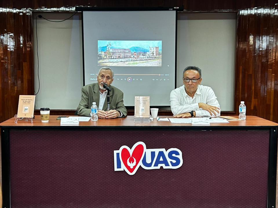 Culiacán.- Dentro del 38 aniversario de la fundación de la emblemática Biblioteca Central “Eustaquio Buelna Pérez”, de la Universidad Autónoma de Sinaloa, la Dirección General de Bibliotecas, en colaboración con el destacado cronista, político y escritor sinaloense Juan Salvador Avilés Ochoa, realizó la presentación del libro “Diario del Distrito de Mocorito (1904-1905)”.