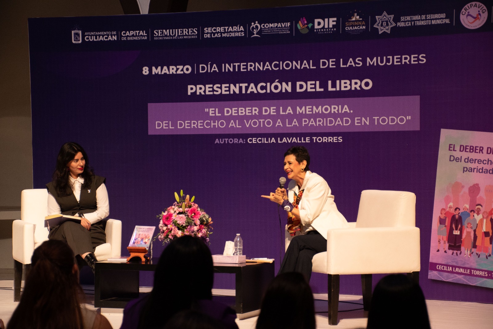Culiacán.– Como parte de las actividades conmemorativas del Día Internacional de las Mujeres, se llevó a cabo en Culiacán la presentación del libro “El deber de la memoria, del derecho al voto a la paridad en todo”, de la periodista feminista y conferencista Cecilia Lavalle Torres, obra que aborda la historia y los avances de las mujeres en la conquista de sus derechos políticos y la participación en la vida pública del país.