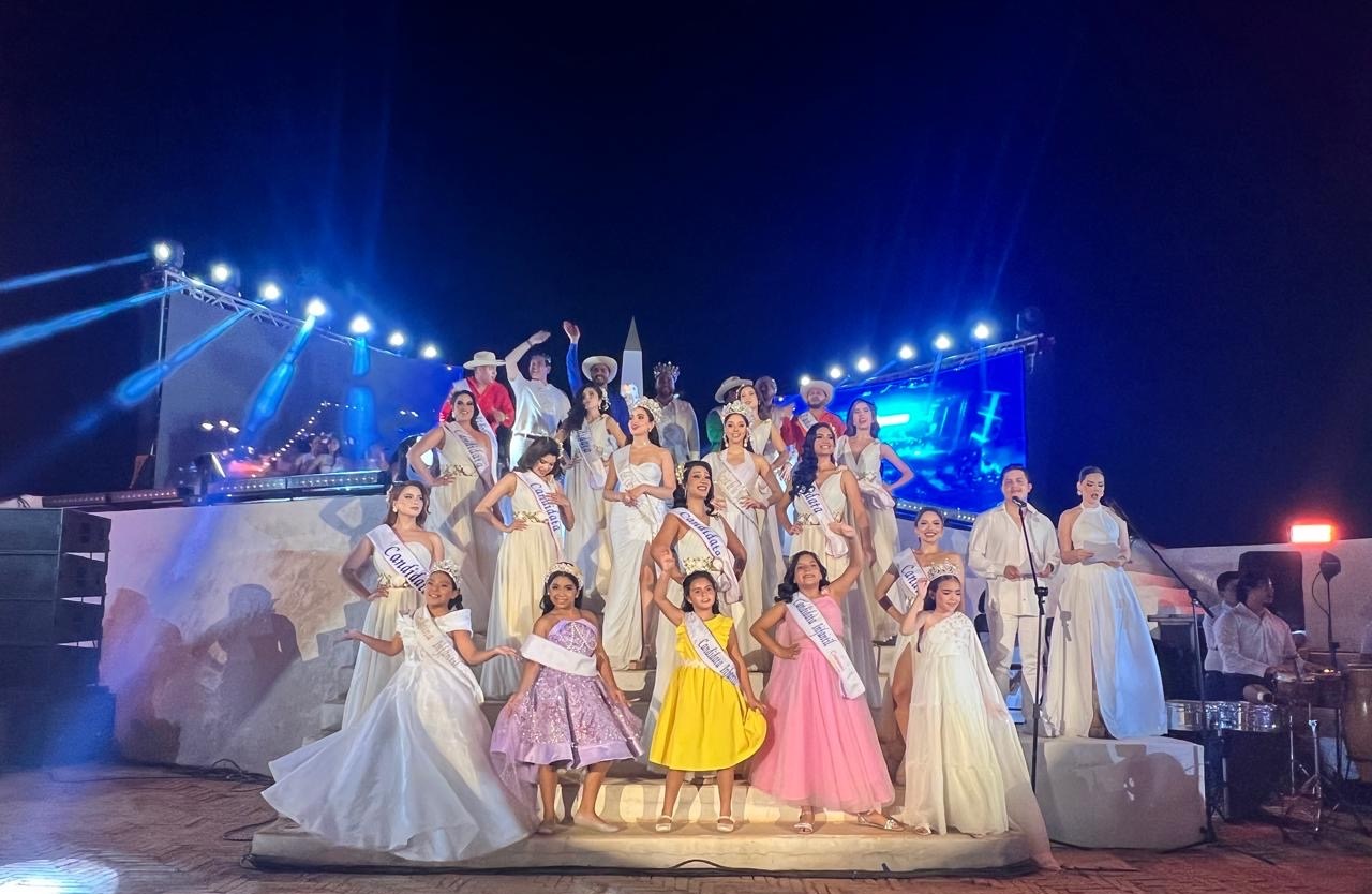 Aspirantes a Reinas del Carnaval y Juegos Florales: El momento más esperado de la noche culminó con la entrada de las nueve candidatas a la máxima corona: Joanna, Monserrat, Marbella M., Marbella R., Anahí, Karely, Mariana, Danya y Andrea. Cada una apareció con porte, elegancia y confianza.