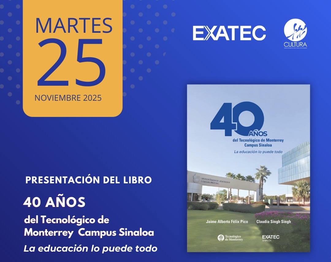 Mazatlán.- Este martes 25 de noviembre, a las 17:00 horas, Casa Haas será el escenario para la presentación oficial del libro “40 Años del Tecnológico de Monterrey, Campus Sinaloa”, obra que documenta la llegada, consolidación y legado del Tec en nuestro estado.