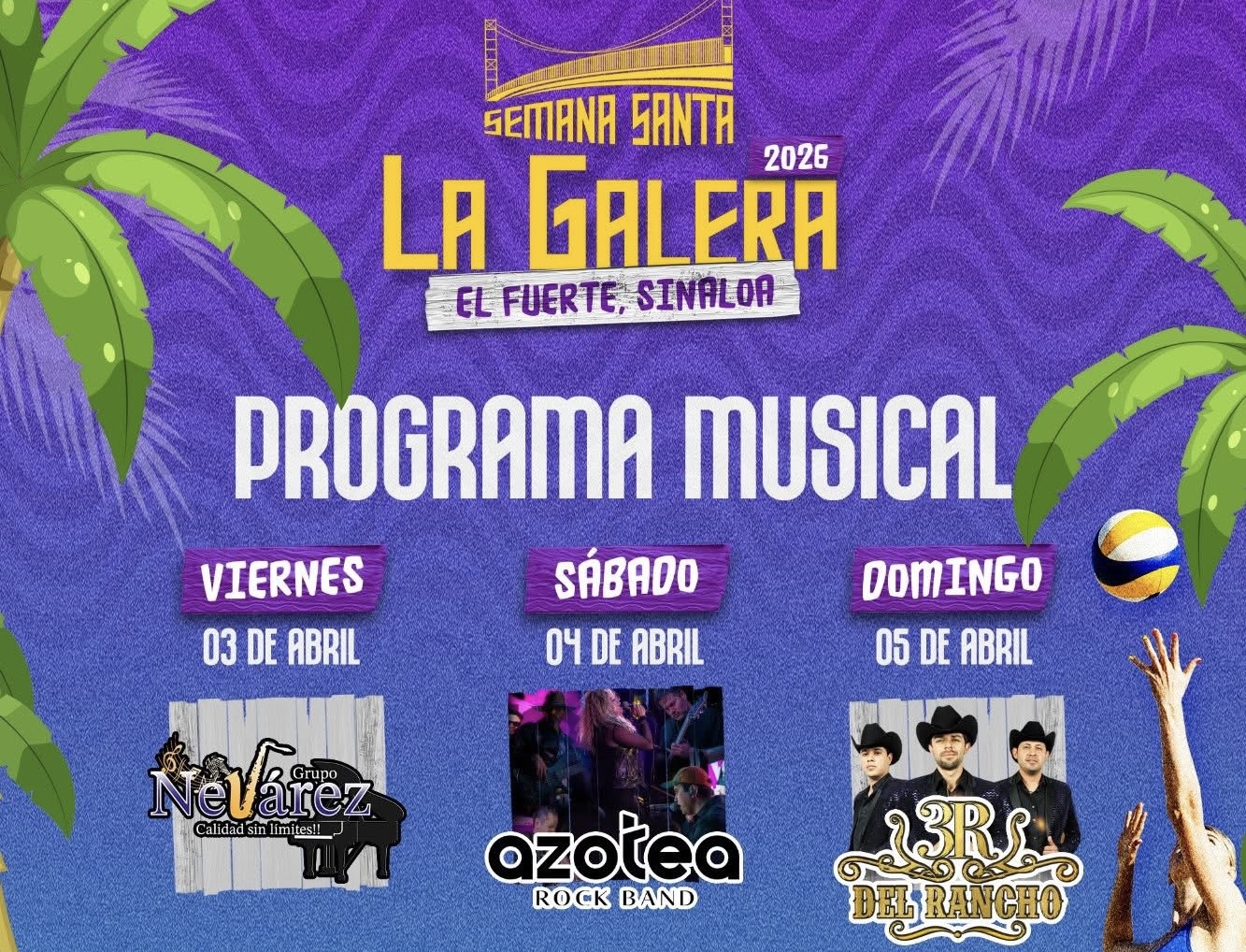 El H. Ayuntamiento de El Fuerte invita a disfrutar de un ambiente lleno de música y alegría durante Semana Santa en La Galera, del 03 al 05 de abril.