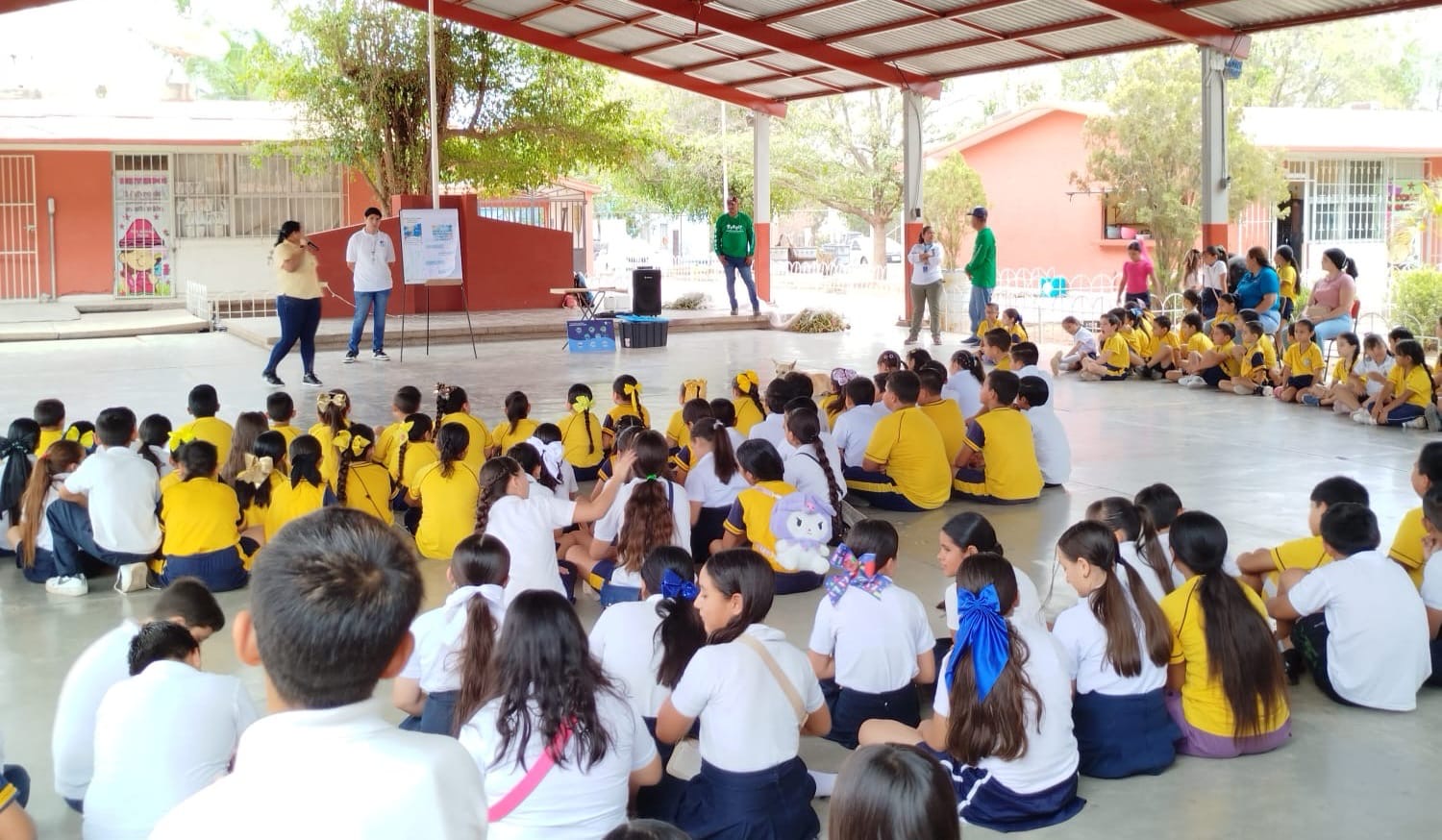 Ante estudiantes de la primaria Leyes de Reforma, Adalberto y su compañero Adrián hablaron de los desafíos que enfrentan las tortugas que han elegido como sitio de alimentación las aguas de la bahía Santa María y exhortaron a la comunidad escolar a involucrarse en la limpieza de las zonas de playa y a evitar tirar basura al mar.