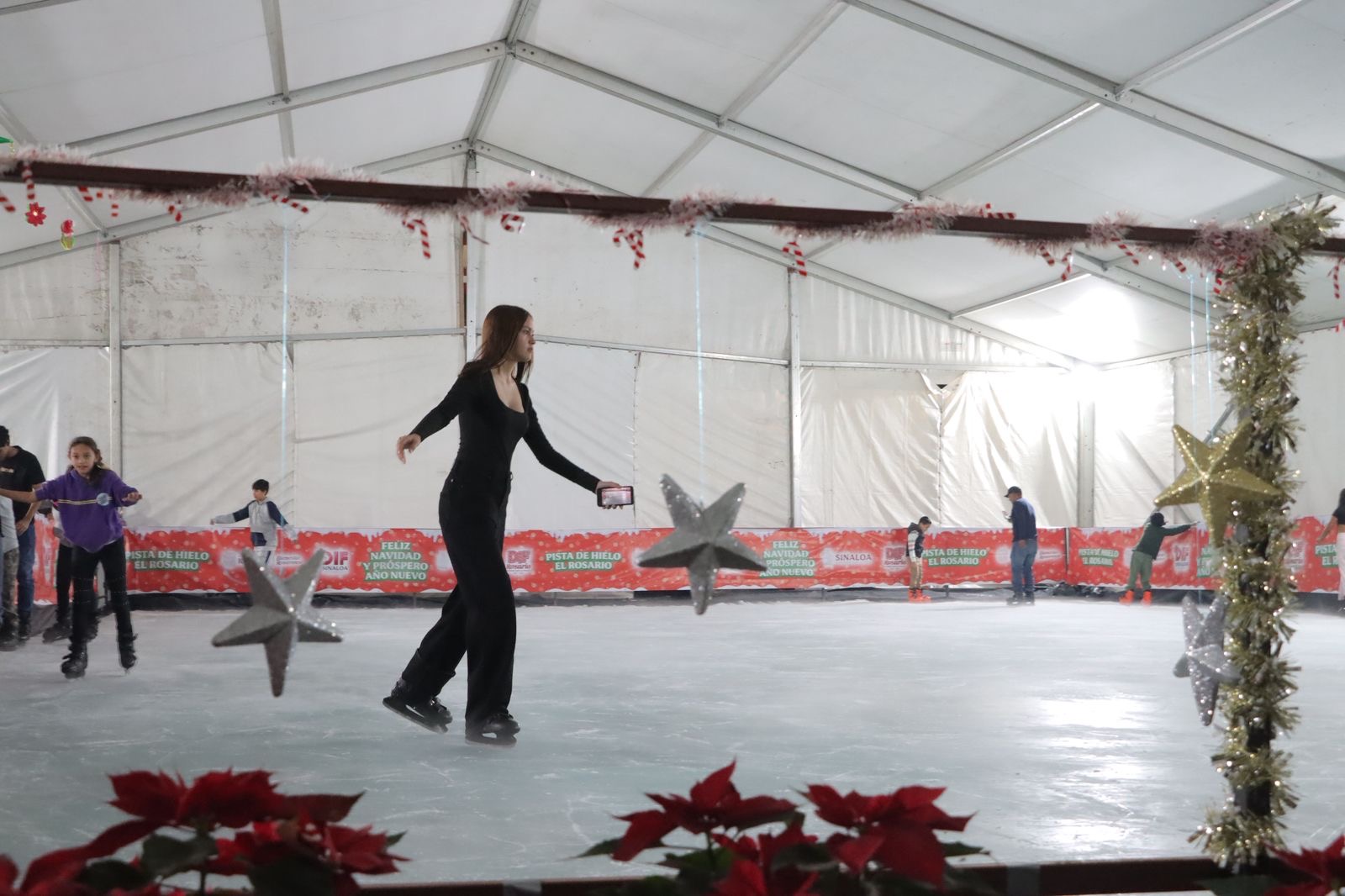 La pista de hielo fue habilitada como parte de las actividades decembrinas, brindando una opción de entretenimiento segura para el público, así como un punto de encuentro para fortalecer el tejido social y promover el sano esparcimiento, comentó la Alcaldesa rosarense durante el evento de inauguración.