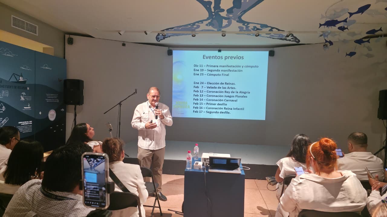 Mazatlán.- Minutos después de la festiva presentación de candidatos y candidatas en El Fuerte 31 de Marzo, Óscar García Osuna, Director General del Instituto Municipal de Cultura, Turismo y Arte de Mazatlán, ofreció una rueda de prensa en Casa del Marino para anunciar la temática oficial y el calendario del Carnaval Internacional de Mazatlán 2026.