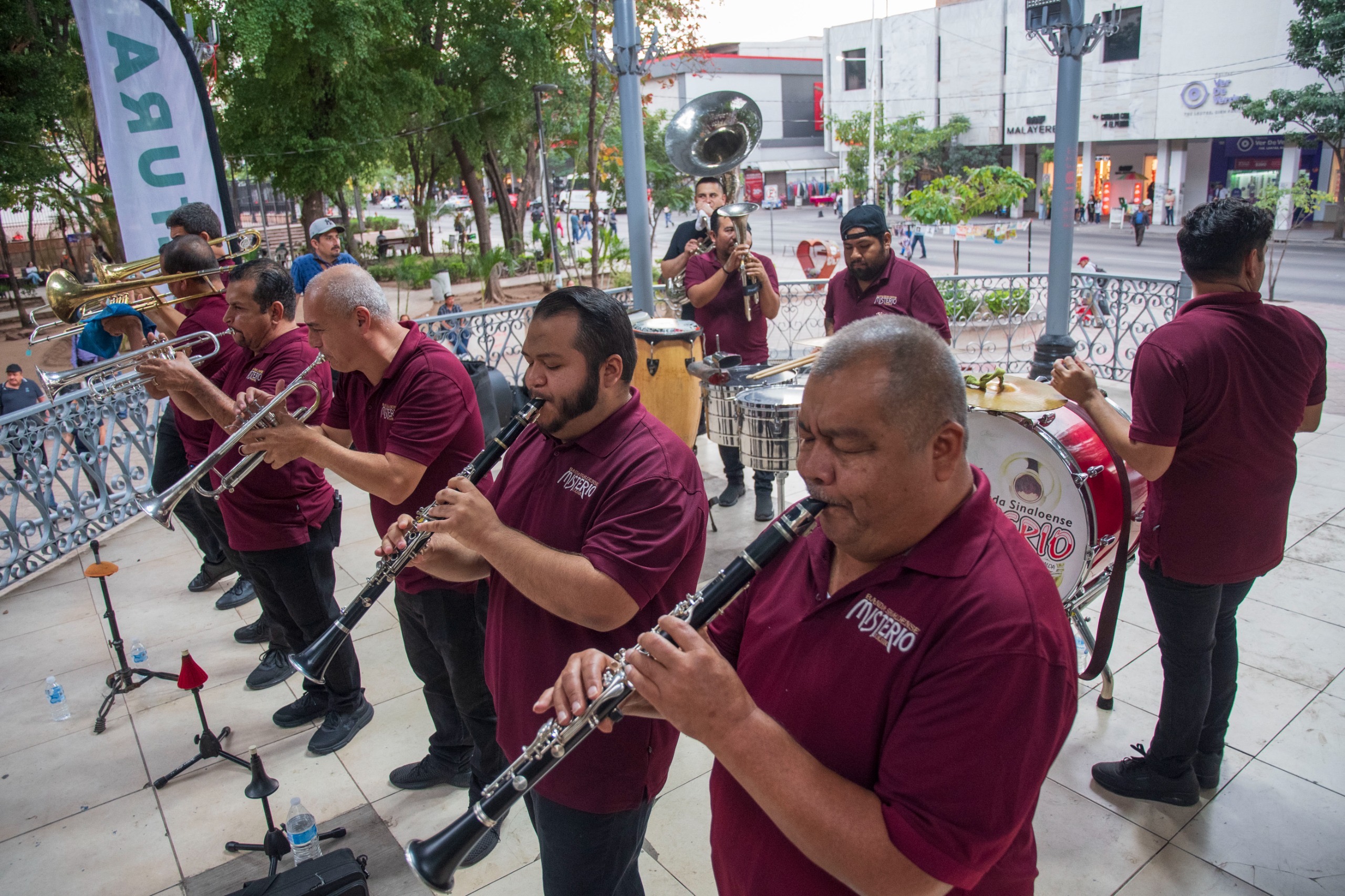 La Plazuela Obregón se consolida así como un punto de encuentro para la música y la convivencia, donde familias completas se reúnen para disfrutar del talento local y de la tradición bandística que distingue a Sinaloa.